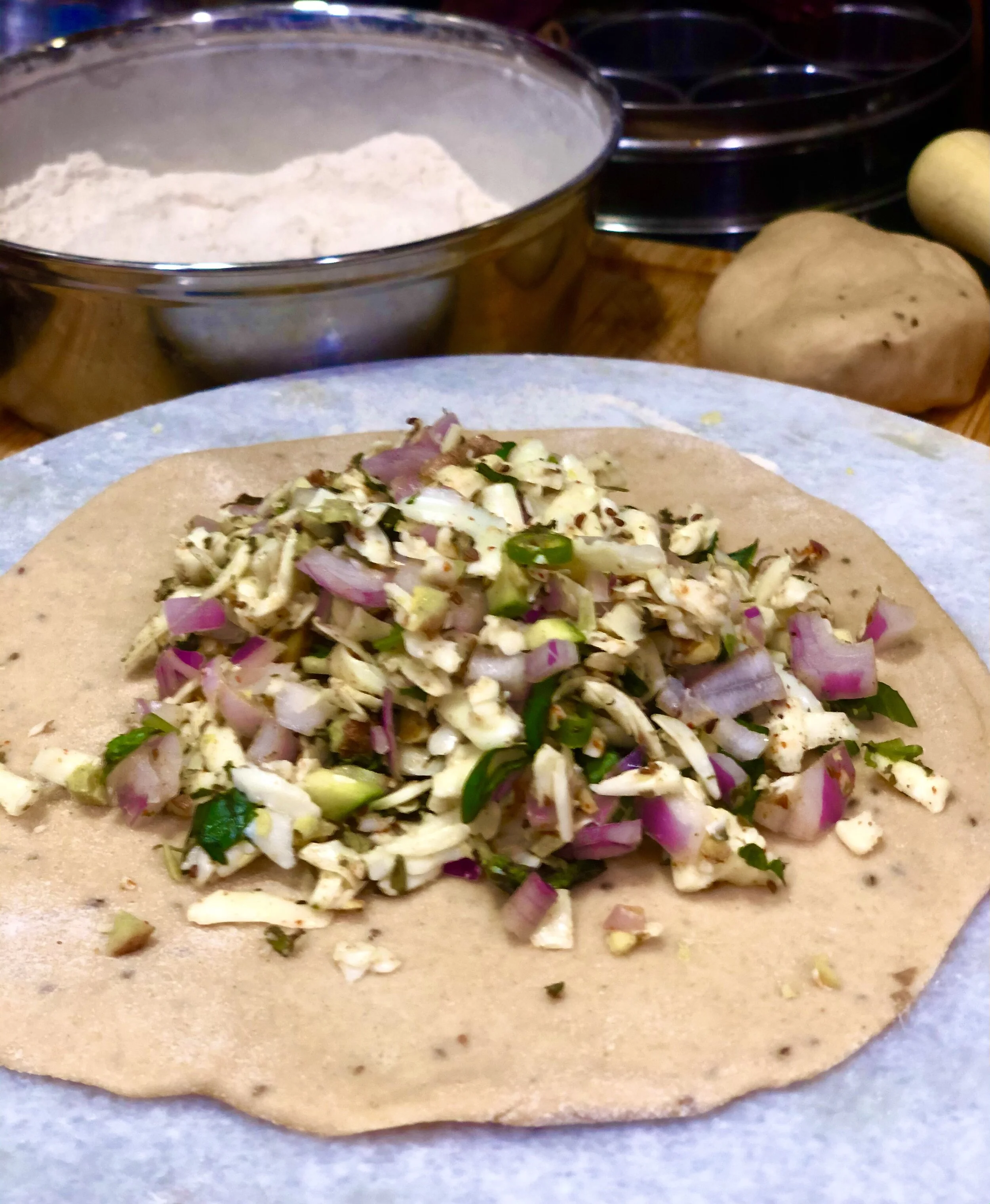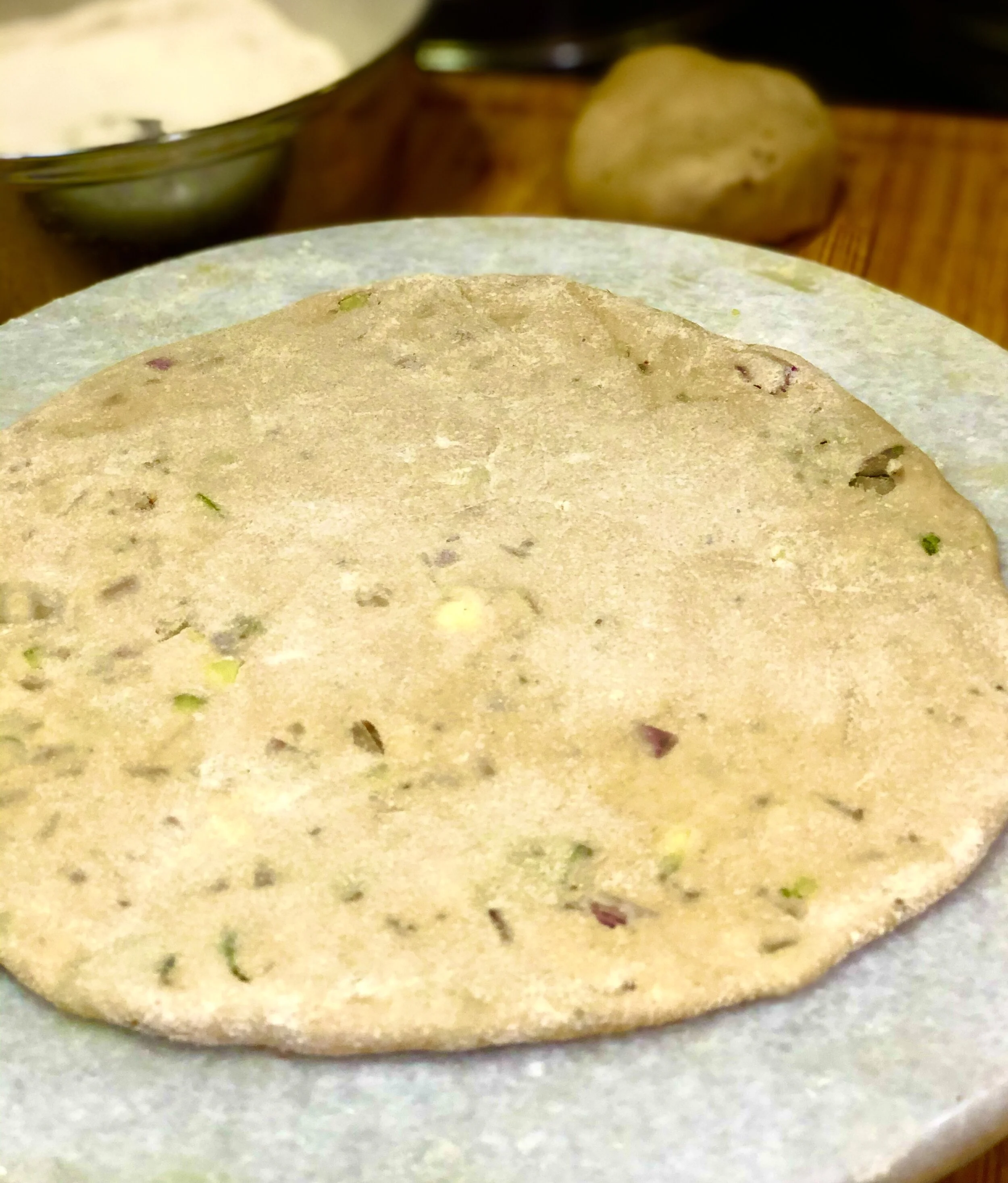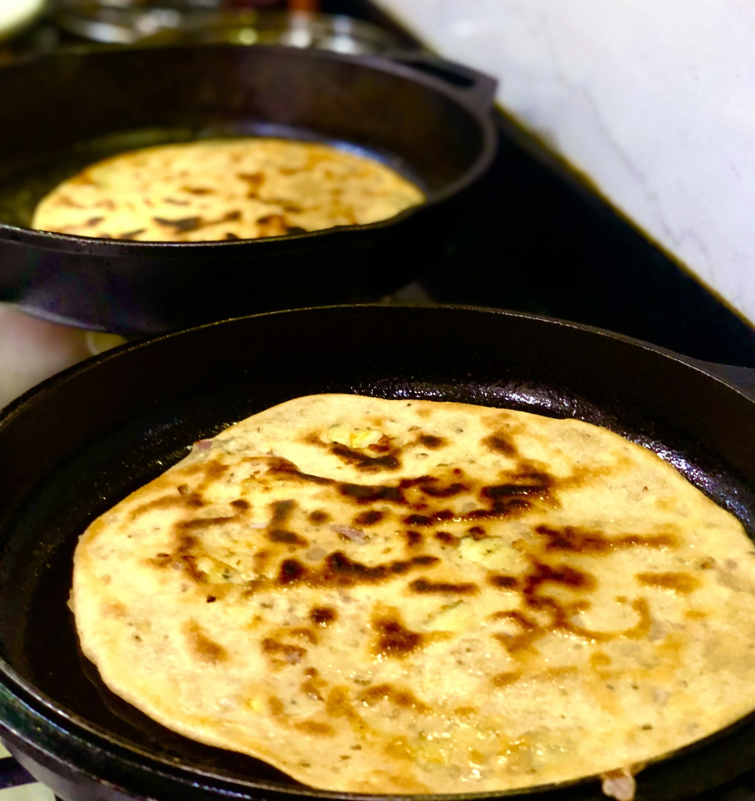 Then, of course, let the ghee and cast iron skillets work their magic. Cast iron makes the outside of the parathas gold and crisp!