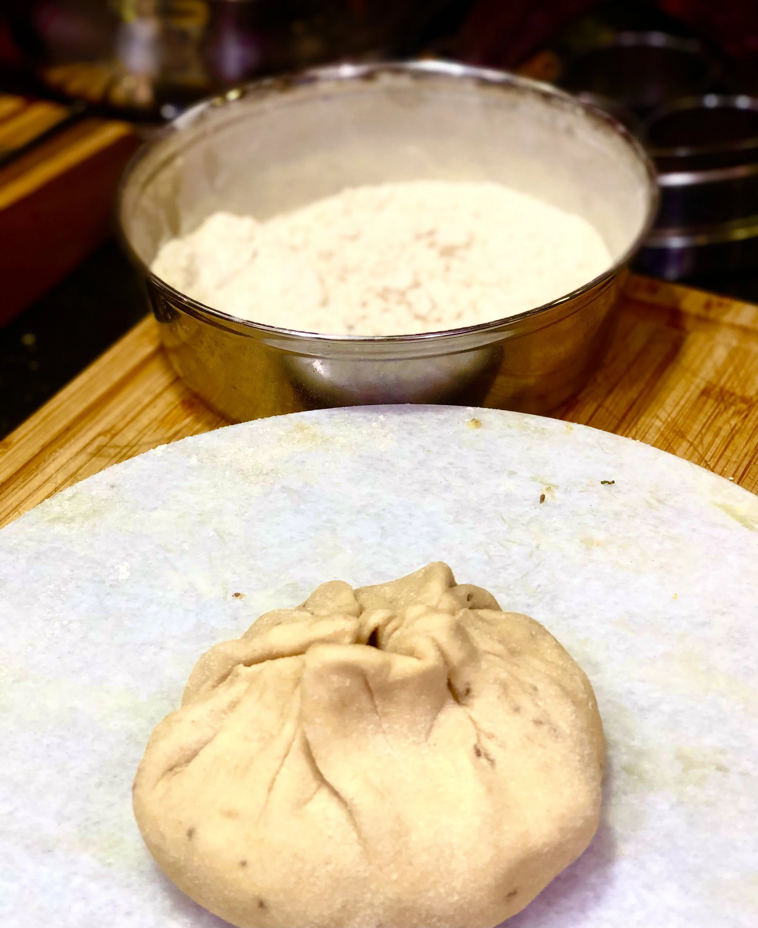 Always stuff more filling than you think can possibly go in. No filling-less doughy bites here. Then, scrunch it up like a bao.